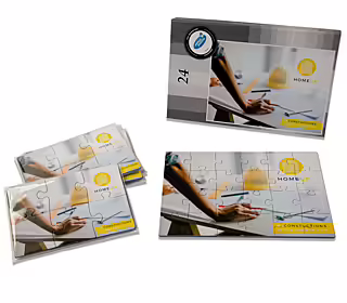Skupiamy się na tworzeniu pełnokolorowych, wysokiej jakości puzzli z Twoich szablonów, logo, grafik lub zdjęć zespołu. Puzzle z solidnym dwuczęściowym pudełkiem są odpowiednie dla handlu detalicznego, targów i wystaw, konkursów, szkoleń, promocji marki oraz nagród. Są również idealne dla fundacji i organizacji charytatywnych.