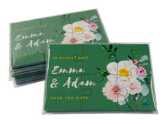Puzzle pocztówki są zrobione z drukowanej tekturowej podkładki, a cały zestaw puzzli jest przechowywany w celofanie. Każdy zestaw pocztówek zawiera darmową, elegancką kopertę. Odpowiednie jako promocyjne upominki lub przedmioty używane w marketingu bezpośrednim.